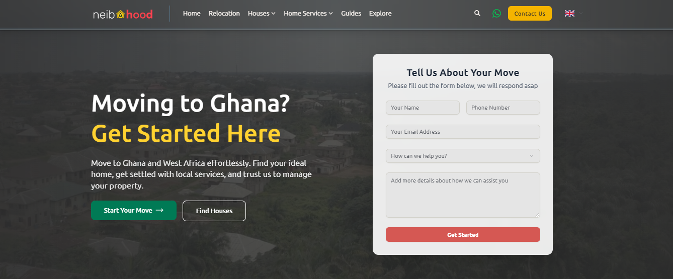 We built a concierge and rental platform for Neibahood to help people in Accra find trusted homes with flexible monthly payment options. The site quickly gained traction, drawing steady inquiries from locals and diaspora alike looking for stress-free relocation support.